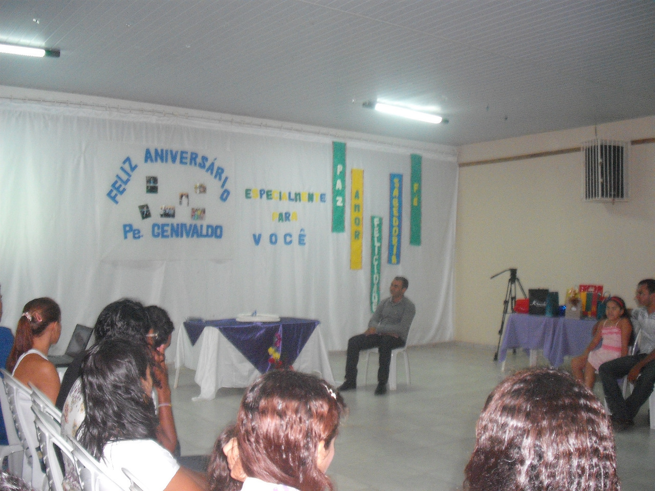 Quarta - Feira dia 15 de Janeiro às 19:30hs foi comemorado o aniversário do Pe. Genivaldo no Salão Dom Franco, o evento contou com a presença de todas as Comunidades da Paroquial Santo Antônio. Como todo Aniversáriante o Pe. ganhou vários presentes e homenagens através de mensagens proferidas por algumas Comunidades, o aniversário contou também com música ao vivo, um jantar e é claro o bolo que não poderia faltar. o Pe. tirou bastantes fotos e até discusou agradeçendo a festa e as manifestações de carinho... Foi muito bom esse momento de união e partilha entre todas as Comunidades que se uniram por um único objetivo, Homenagiar o nosso Querido Pe. Genivaldo. Veja algumas fotos do Aniversario em galeria.